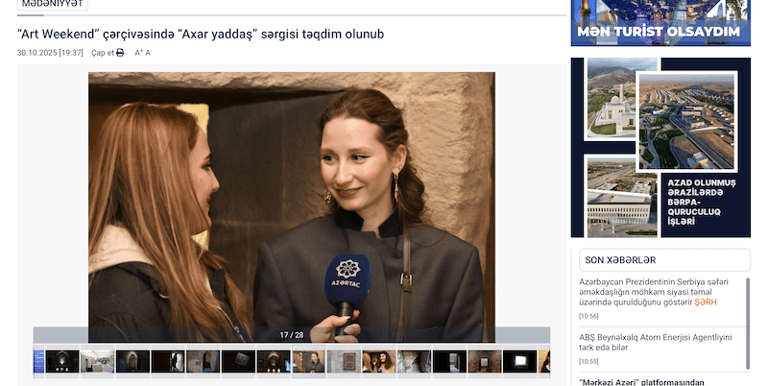 “Bakıya Uçuş. İncəsənət Həftəsonu. Gələcəyimizi İNDİ Duy” (“Fly to Baku. Art Weekend. Sense the Future NOW”) layihəsi çərçivəsində oktyabrın 30-da bir neçə rəssamın əsərlərindən ibarət “Axar yaddaş” sərgisi təqdim olunub.