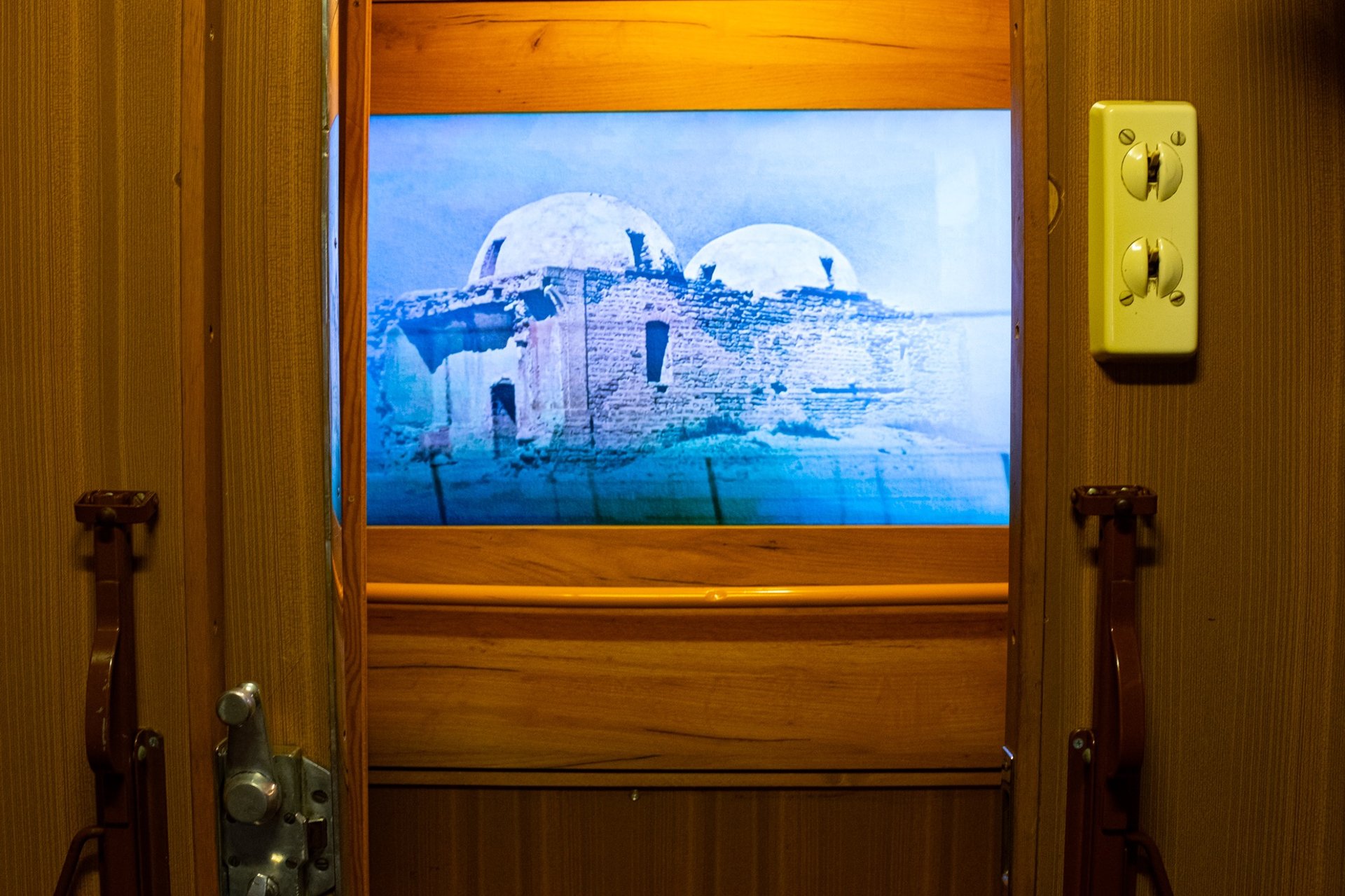 Elnur Babayev's video titled "Old bath" presents this architectural monument, which is still existing, but is rapidly falling apart, with documentary images taken more than 30 years ago, during his visit to the Sand bath together with the author's father - People's Artist of Azerbaijan Rasim Babayev.